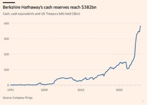Warren Buffett sees limited opportunities in current market, waiting for a major dip to deploy capital. Berkshire Hathaway holds a record $382B in cash reserves
